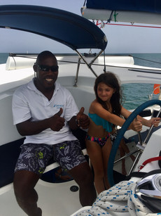 Our third stop, Antigua. In Antigua, we set out for a day on the water on our private charter, Catch the Cat. Owned by a charming couple, Lushi and Margot, we instantly felt like family as Lushi let our kids drive the catamaran and Margot welcomed us with drinks. Their teenage grand daughter was also helping out. We stopped at some amazing snorkeling spots and saw tons of fish and coral. Lushi taught my older son how to dive for conch and he was soon certified, genuine island conch diver. Margot prepared a delicious lunch of salad and Lushi's secret sauce chicken. It was a fabulous day on the water and I would highly recommend Catch the Cat to anyone visiting Antigua!